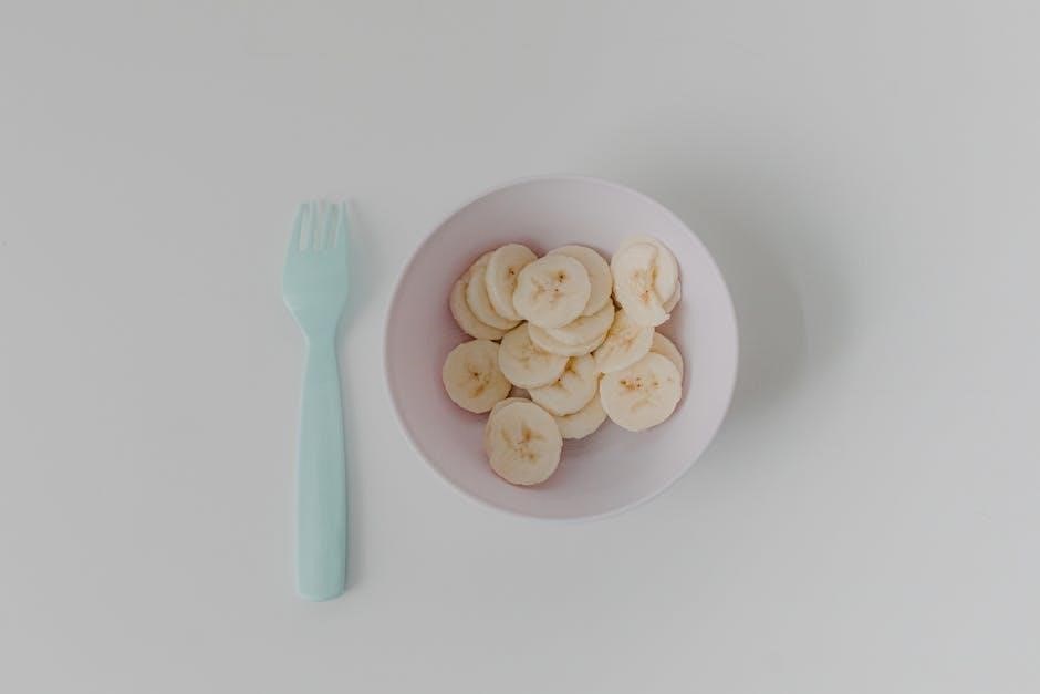 PDF recipe guides often demonstrate how to create simple smoothies using combinations like banana and mango‚ or apple and pear. They emphasize using ripe fruits for optimal sweetness and ease of blending. For babies developing chewing skills‚ soft-cooked apple or pear slices are recommended.